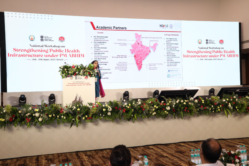 Prof. Sarika Mehra, Principal Investigator, NDMC, was invited by the Ministry of Health and Family Welfare at the PM-ABHIM workshop, where she gave a presentation on the National Disease Modelling Consortium and the work being done by the researchers.